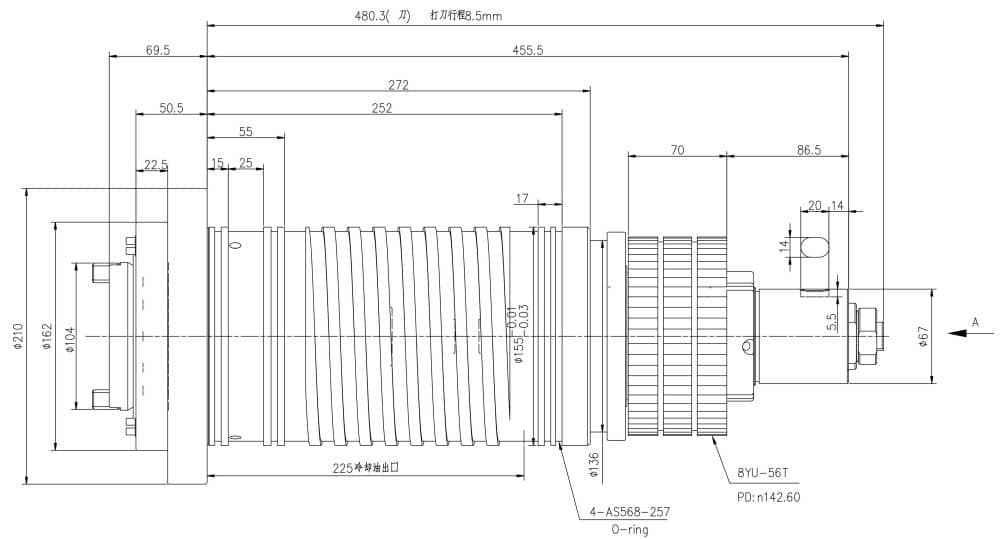 高速皮帶式主軸YD155-BT50